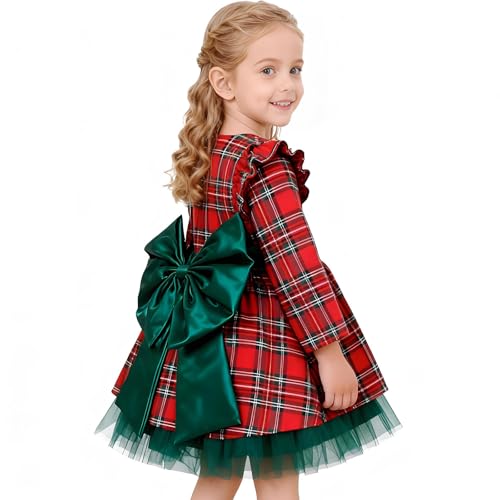 Girls Christmas Dress Kids Christmas Dress Tartan Christma Outfits for Girls Toddler Christma Dresses Plaid Girl Red Dresses Winter Party Baby Christmas Outfit Girl Xmas Clothes 4 Years-5 Years