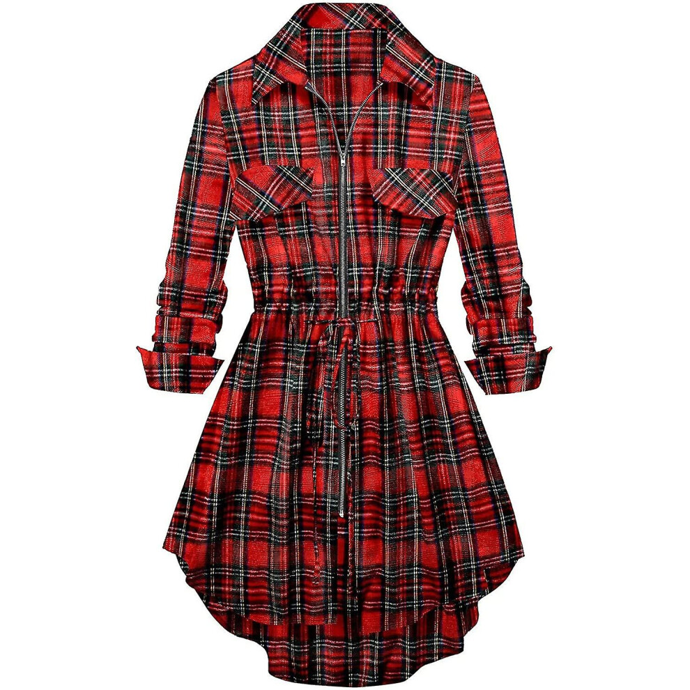 (Style1, XL) Women's Fall Dresses Vintage Plaid Zip-up Long Sleeve Mid Length Shirt Clothes S-2xl-mxbc
