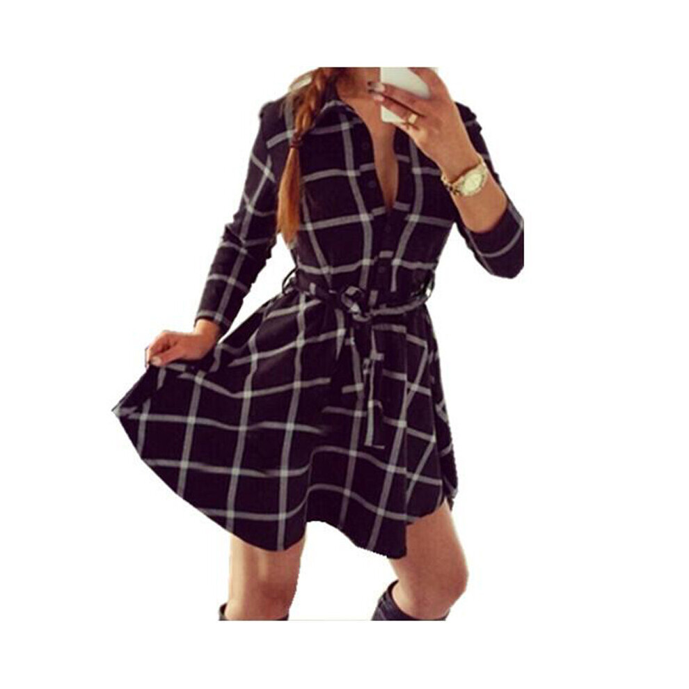 Women Summer Dress Arrival Leisure Vintage Dresses Women Plaid Check Print Mini Dress Vestidos Mini WS001
