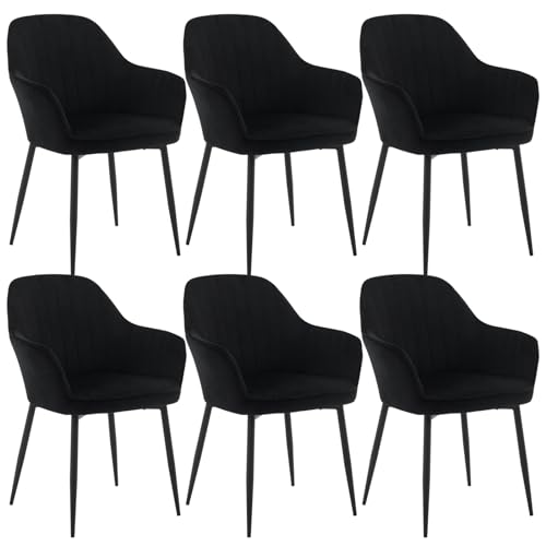 AINPECCA Velvet Dining Chairs with Arms and Backrest Dining Chairs Set of 6 Upholstered Living Room Chair Ergonomic Chair for Lounge, Office, Dressing Table (Black)