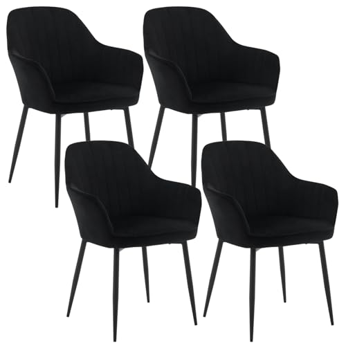 AINPECCA Velvet Dining Chairs with Arms and Backrest Dining Chairs Set of 4 Upholstered Living Room Chair Ergonomic Chair for Lounge, Office, Dressing Table (Black)