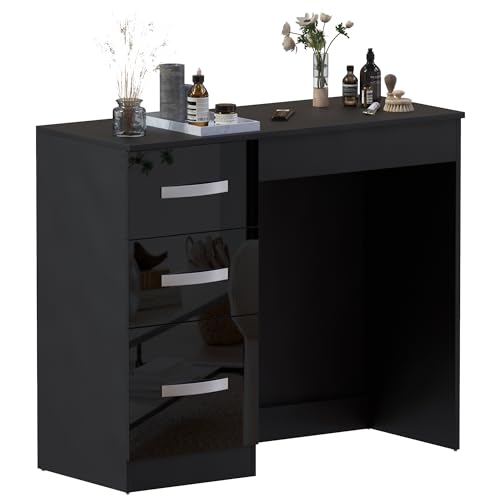 Vida Designs Hulio High Gloss 3 Drawer Dressing Table, Black, 79 x 93 x 38 cm