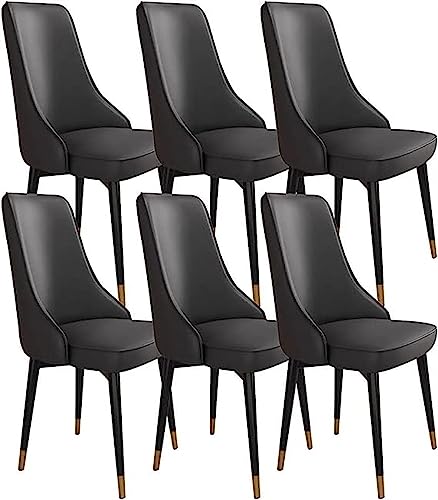 HBSSP Modern Dining Chairs Set Of 6,PU Leather Kitchen Chair Modern Simplicity Bedroom Marriage Room Balcony Sofa Chair Dressing Table Makeup Chair(Black)