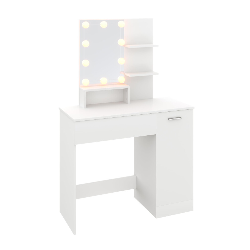 Dressing Table with Mirror and LED Lights, Modern Vanity Table, White