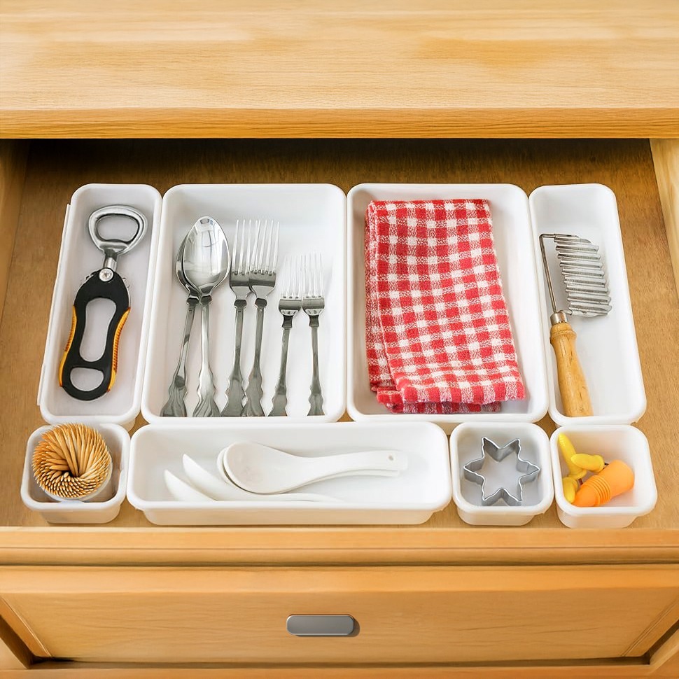 8pc Make Up Kitchen Dressing Table Drawer Desk Organiser Cutlery Storage Boxes