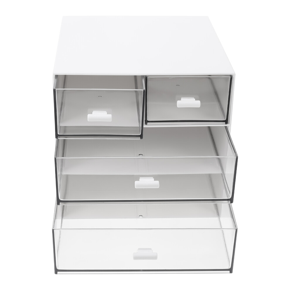 iDesign 36560EU Makeup Organiser with Four Drawers, Sturdy Plastic Storage Box for Makeup, Accessories, Jewelry and More, Compact Dressing Table Organiser, Clear