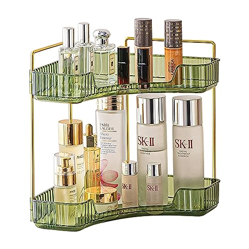 Baoswi 2-Tier Green Corner Makeup & Skincare Organiser, Perfume & Dressing Table Organiser, Triangle Corner Storage