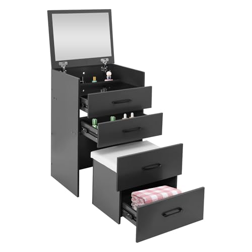TYUNGZM 3 in 1 Vanity Desk with Flip Top Mirror, Makeup Vanity Table Set with Cushion Stool, Compact Dressing Table with Storage Drawers and Hidden Storage