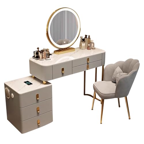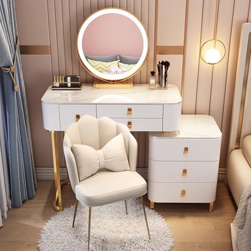 JHHNCVBC Makeup Vanity Combination Desk, Dressing Table, Storage, with LED Light Vanity Mirror with Storage Cabinet For Women's Gift