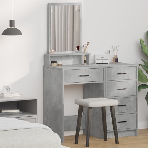 Mokuyary Dressing Table with Mirror Concrete Grey 96 x 39 x 142 cm Dressing Table with Drawer and Shelves, Makeup Table for Bedroom