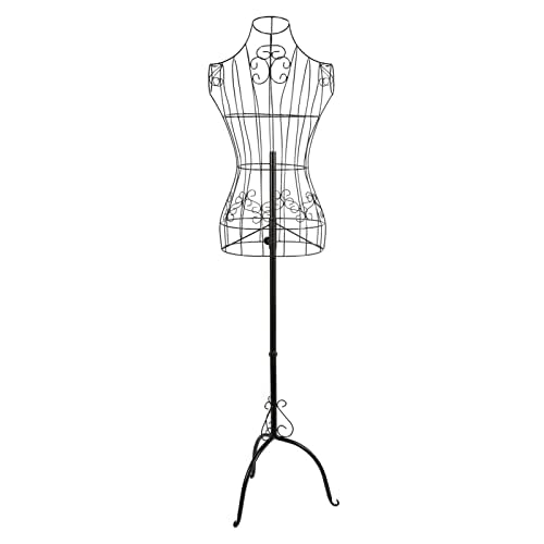 Youyijia Dressmaking Mannequin Female Mannequin Stand Adjust Height Tripod Dress Stand Mannequin Torso Body with Metal Wire Busts Stand for Clothing Display Black