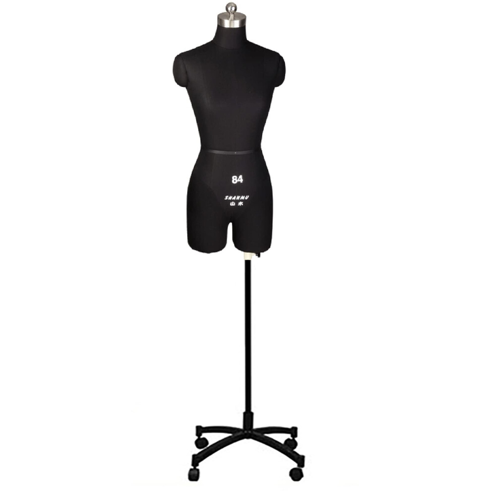 Size 6-8 BLACK Female Dressmaking Mannequin Dummy & Tailors Bust on Black Tripod Stand
