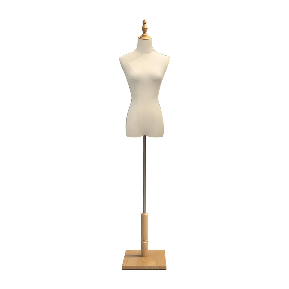 Female Torso Mannequin M Size with Wood Base for Dressmaking and Clothing Display