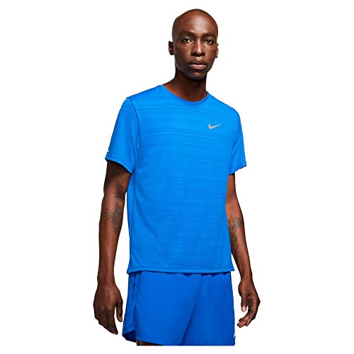 NIKE Miler Breathe Dri-Fit Men's Short Sleeve Running Top, Psychic Blue/Reflective Silv, HJ4181-422, L
