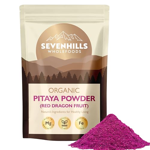 Sevenhills Wholefoods Organic Pink Dragon Fruit (Red Pitaya) Powder 100g for Smoothies, Juices, Desserts, Cakes & Yoghurt | Natural Pink Colouring | Freeze-Dried | Highly Concentrated