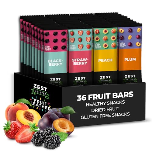 Fruit Snacks by Zest Delites, Dried Fruit Leather Bars, Healthy Snacks for Adults, Vegan, Lavashak, Healthy Sweets, Blackberry, Strawberry, Peach, Plum, 25g x 36