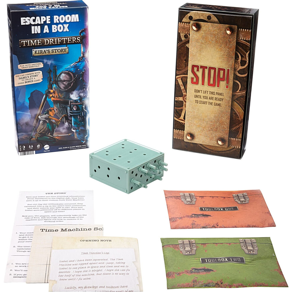 Mattel Games Escape Room in A Box: TIME Drifters KIRA'S Story Party Game for 1 to 4 Players with Clues & Puzzles Combine with Kira's Story for Remote