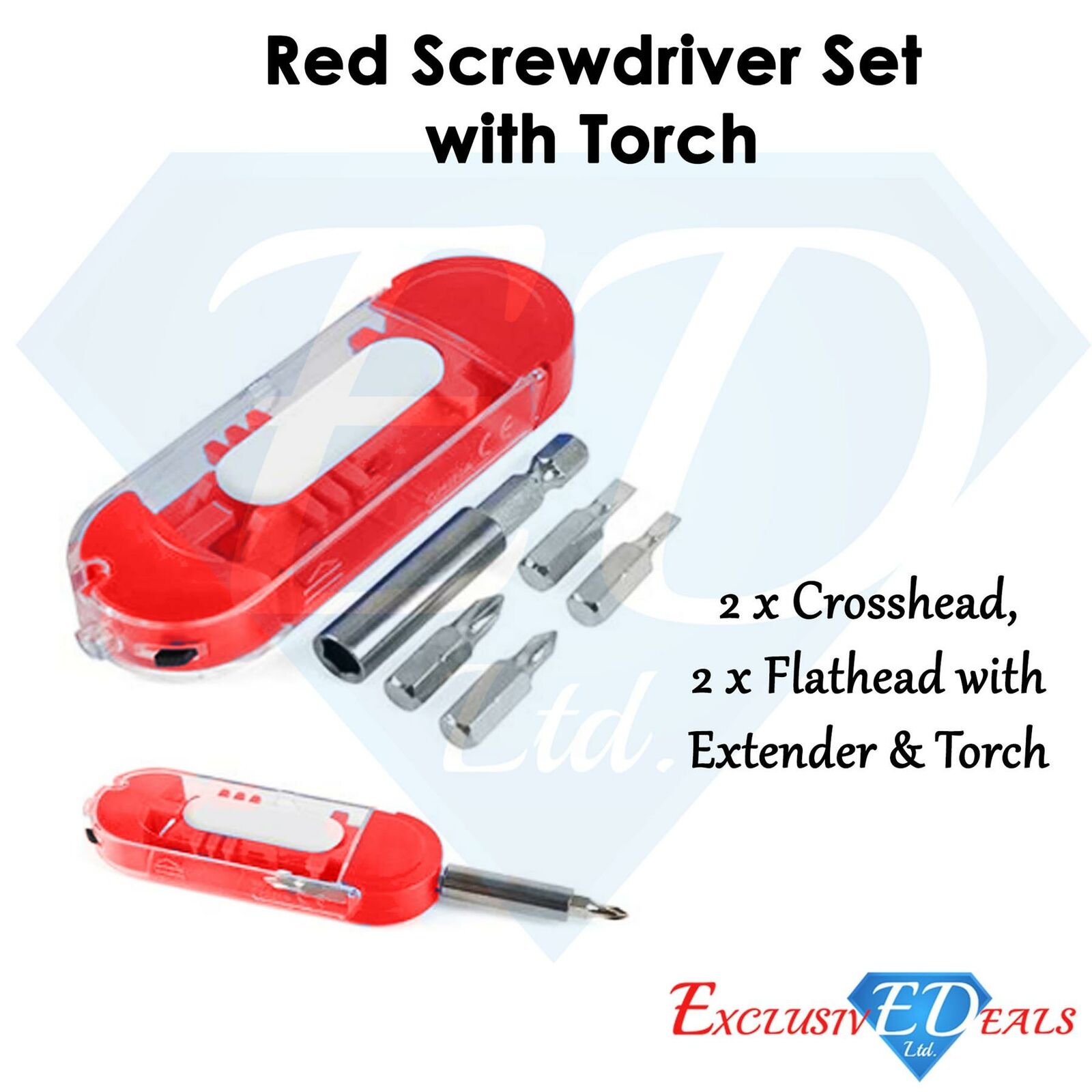 Pocket Screwdriver Set Drill Bit Holder Protective Case & Torch Light Extender
