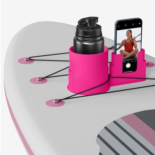 Paddle Board Drink Holder Kayak Water Bottle Holder with Phone Support Multifunctional Anti-Toppling Paddleboard Cup Support Kayak Paddle Board Fixed Accessories Fit Most Cups (Pink)