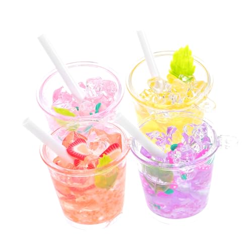 PLAFOPE 4pcs Miniature Cold Drink Cup Wine Bottle Keychain Portable DIY Bag Charms for Travel Shopping Parties Unique Lightweight Dollhouse Accessories in Pink Yellow Peach Purple