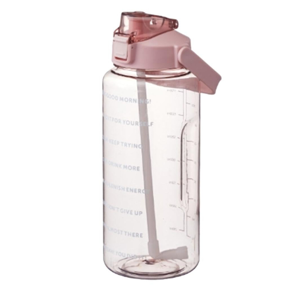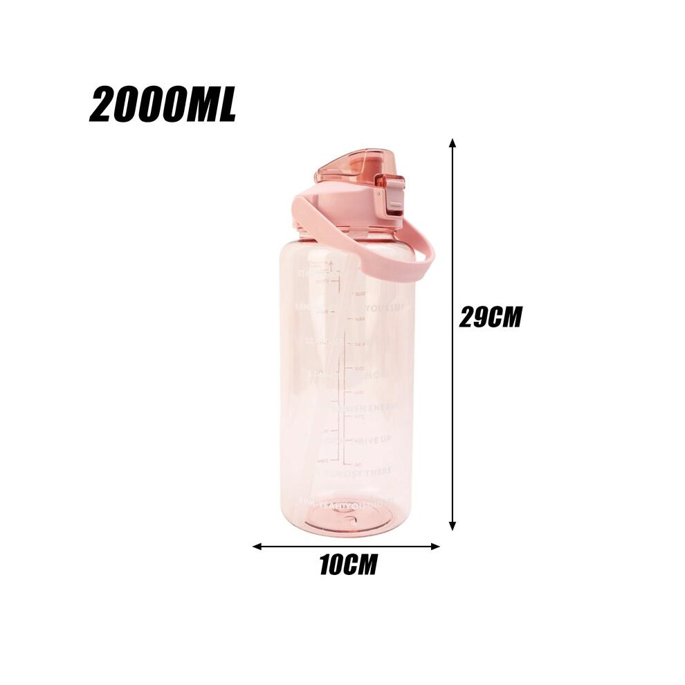 (pink) 2L Portable Water Bottle Large Capacity Plastic Straw Water Cup Drink Bottle with Time Marker for Outdoor Sports Universal