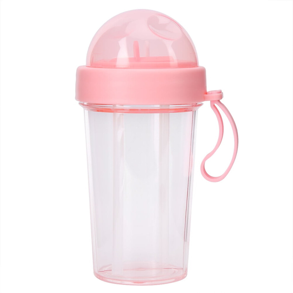 VIFERR Water Bottle 420ml Portable Two Straws Outdoor Travel Water Bottle Leak-proof Dual-use Sport Drink Bottle(Pink)