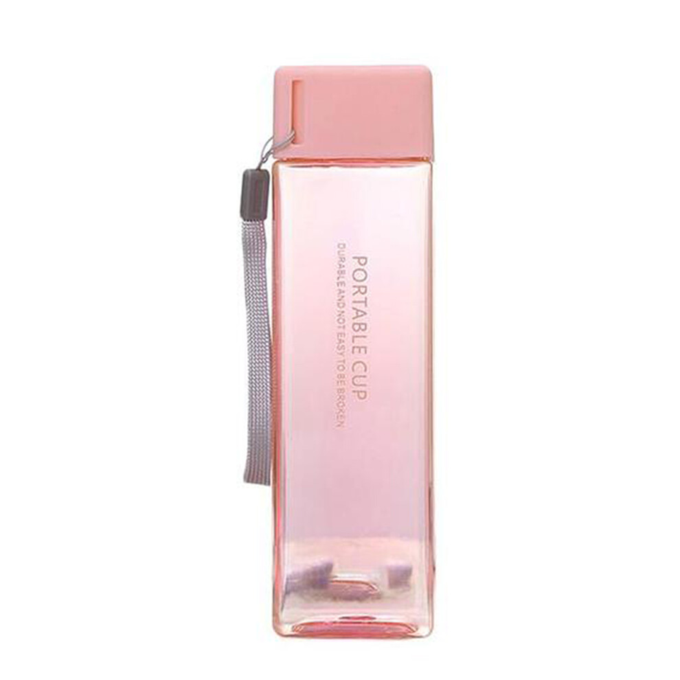 Jygee Water Bottle Outdoor Portable 450ml Water Cup Square Plastic Sports Drink Bottle, Pink, Transparent