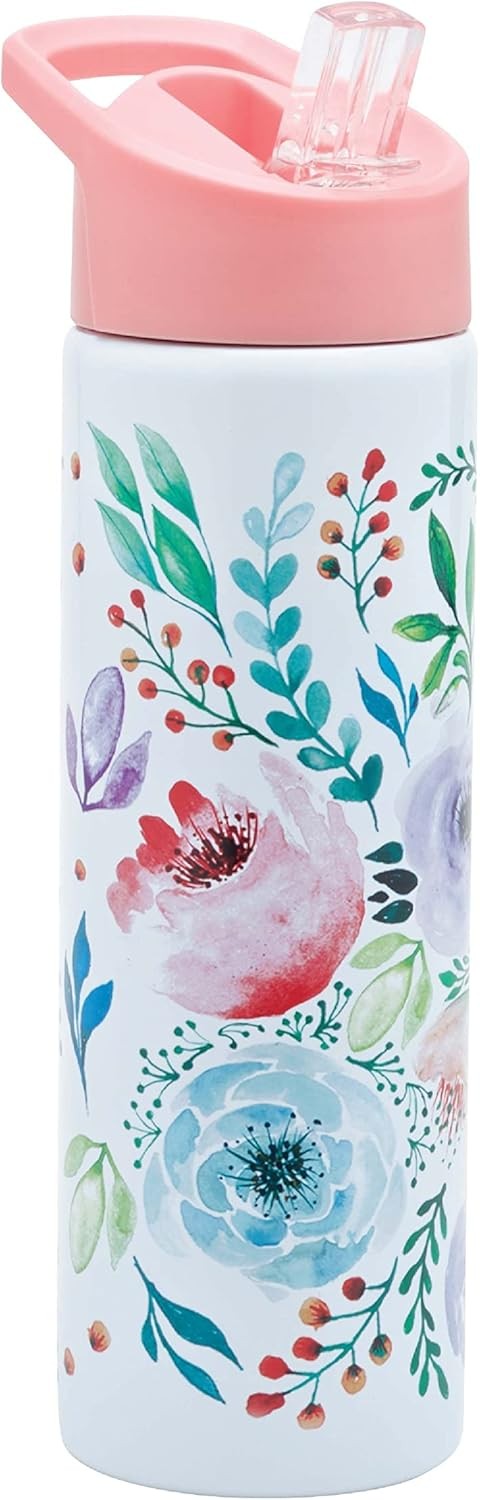 Smash Stainless Steel Drink Bottle with Sipper Lid with Straw - Full Bloom 750ml, Pink