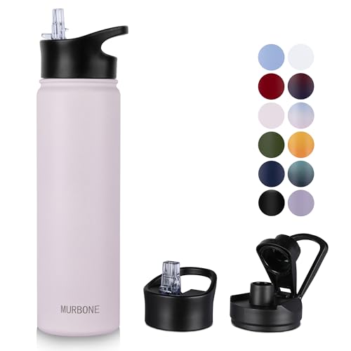MURBONE Insulated Water Bottle, 750ml Stainless Steel Drink Flask with Straw, BPA Free, 2 Lids (Straw Lid and Spout Lid), Leakproof Double Walled Vacuum Water Bottle, Pink