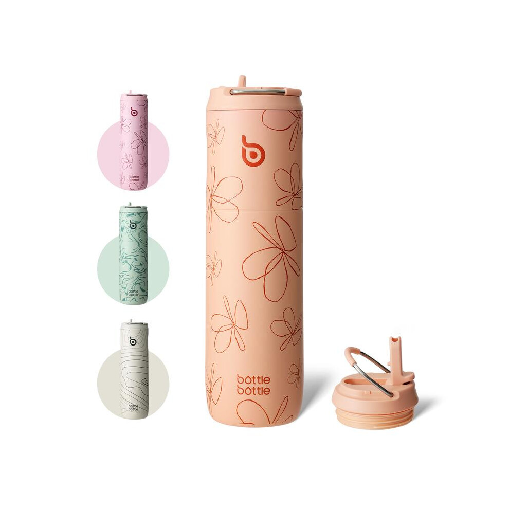 (Pink Flower) Bottle Bottle Insulated Water Bottle 700ml(24oz) with Straw and Lid Stainless Steel Sports Travel Gym Water Bottles Metal Drink Flask wi