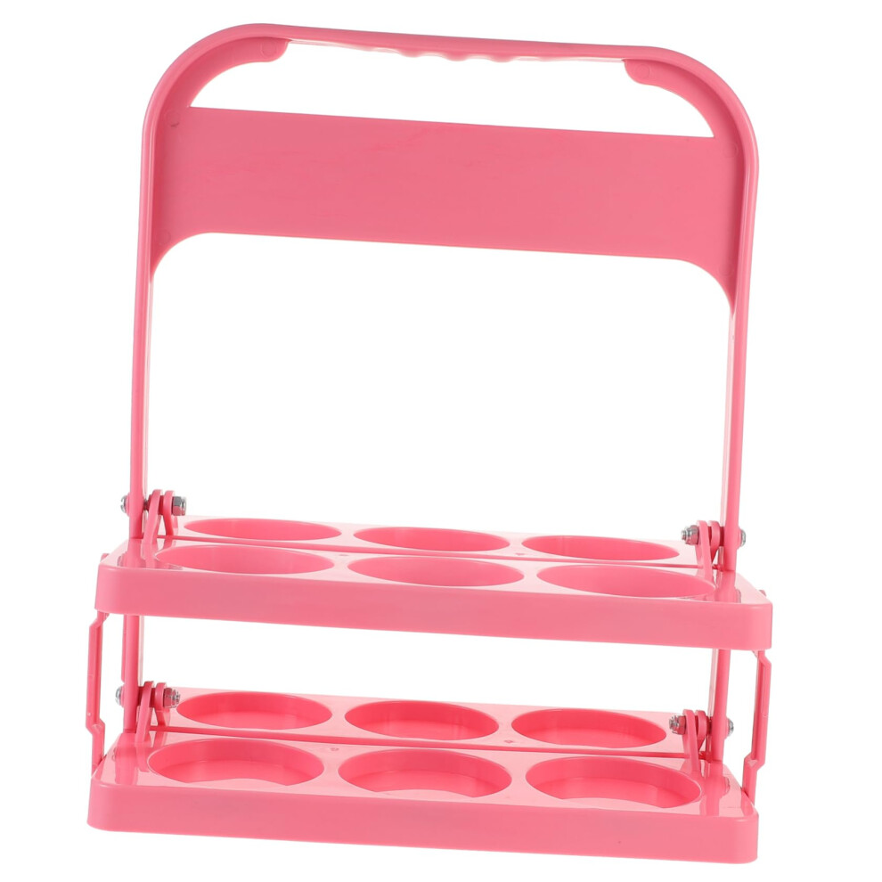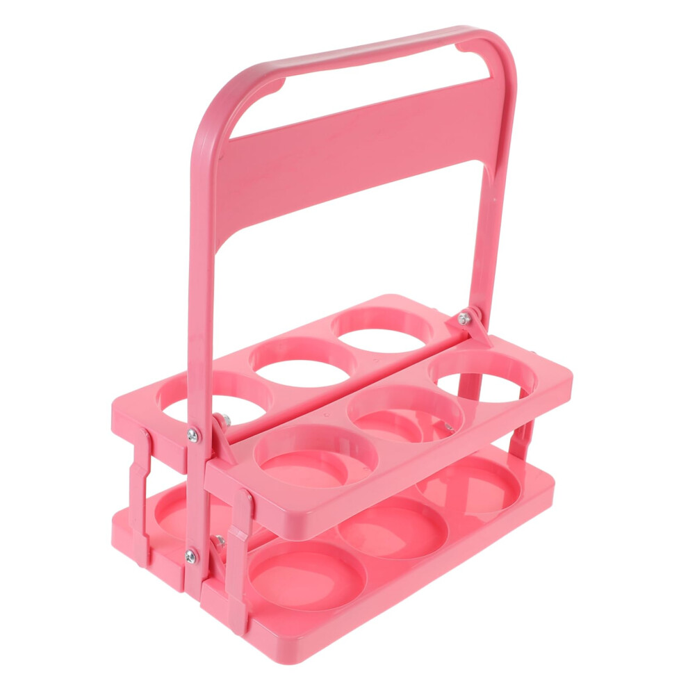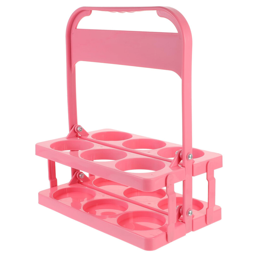 Folding Beer Bottle Carrier Rack With Handle Bottle Drink Organizer And Portable Water Cup Holder Pink