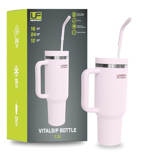 Urban Fitness VitalSip V2 Bottle, 1200ml 40oz, Insulated Stainless Steel, Sliding Lid with Straw, BPA-Free, Hot 12 Hours & Cold 18 Hour, Drink Tumbler, Pink