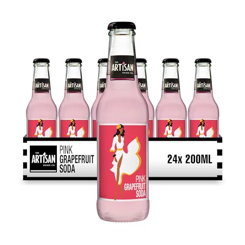 The Artisan Drinks Pink Grapefruit Soda - 24x200ml Bottles - 42 calories per Bottle - Premium Sparkling Soft Drink with Natural Ingredients and No Artificial Sweetners