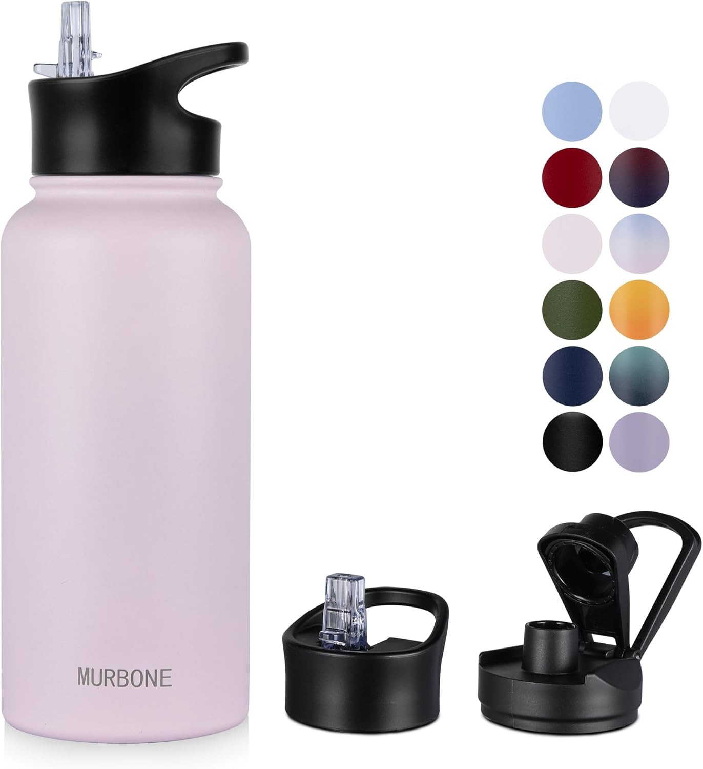 MURBONE Insulated Water Bottle, 1L Stainless Steel Drink Flask 1000 ml, Pink