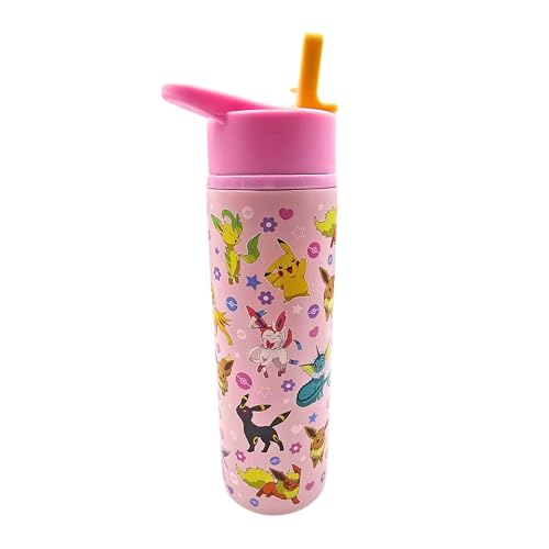 HOX Pokemon Eevee Pink Drink Bottle 750ml | Reusable BPA-Free Plastic Insulated Sports Bottle with Stainless Steel Flip-Top | Spill Proof & Carry Loop | Keeps Cold for 24hrs & Hot for 12hrs