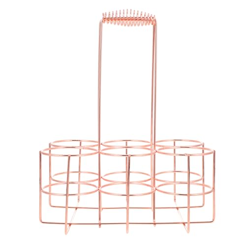 Cabilock Rose Gold Iron Wire Wine and Beer Bottle Carrying Basket with Handle Small Holder for Bar Party Ktv and Home Use Practical Portable Drink Carrier for Easy Storage and Transfer