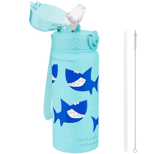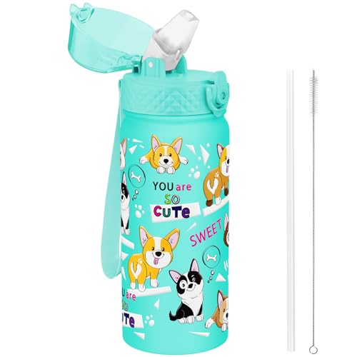 GOPPUS 550ml/18oz Kids Insulated Water Bottle with Straw Cute Double Wall Stainless Steel Child's Small Flask Vacuum Insulated Steel Metal Leak Proof Drink Flask Boys Toddler Girls Bottles BPA-Free