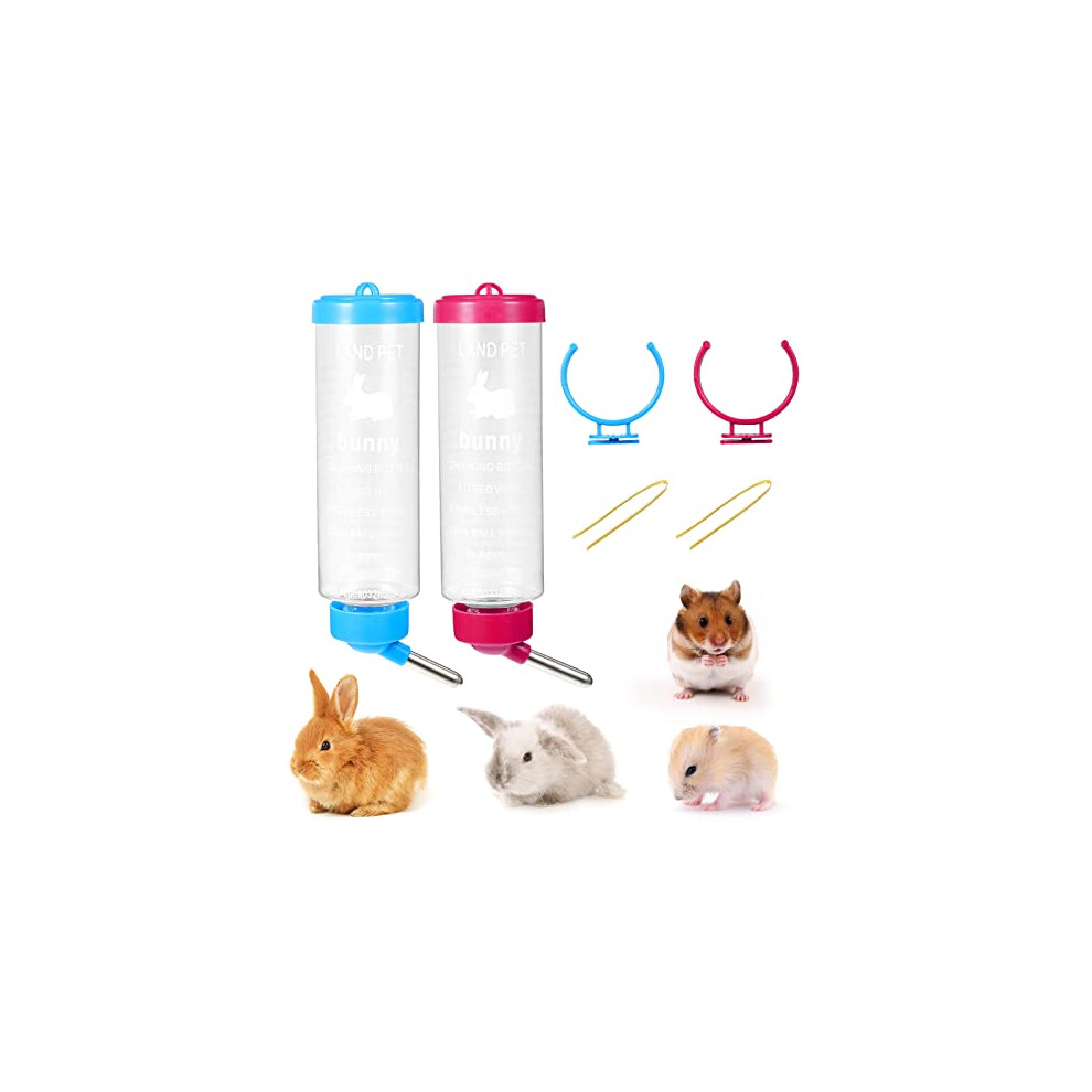 (blue and rose red) 2pack/lot Large Capacity Easy To Drink Bottle For Small Animals Guinea