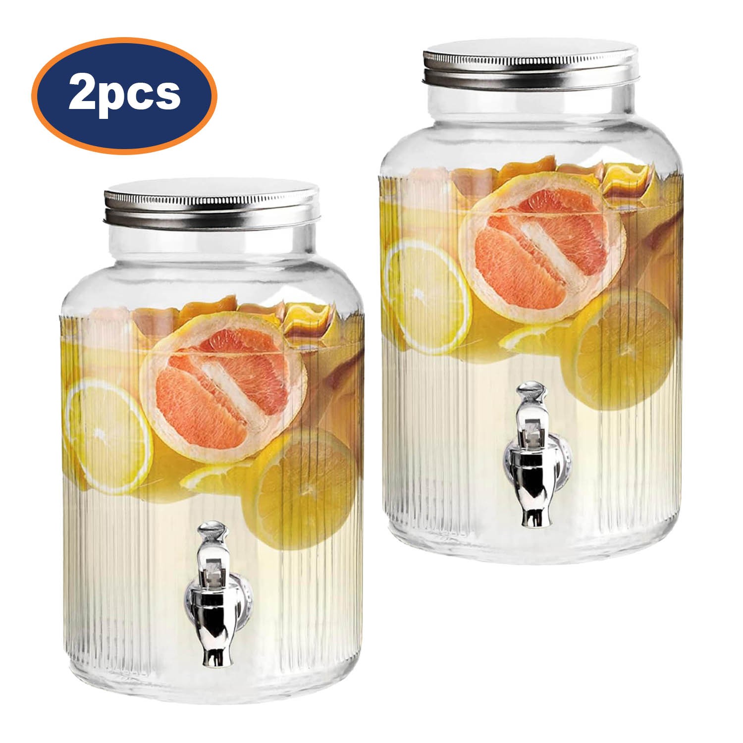 Glass Drink Dispenser With Tap & Screw Lid Jug 5.5 Ltr The Vintage Company 2Pcs