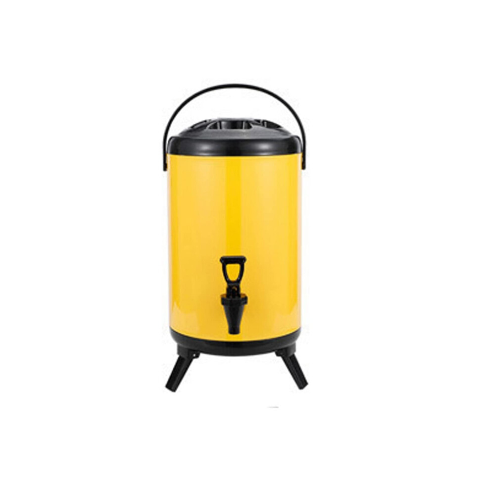 Isolated Hot And Cold Beverage Dispenser Bucket, Stainless Steel Drink Dispenser With Tap, 8L Yellow Drink Cooler
