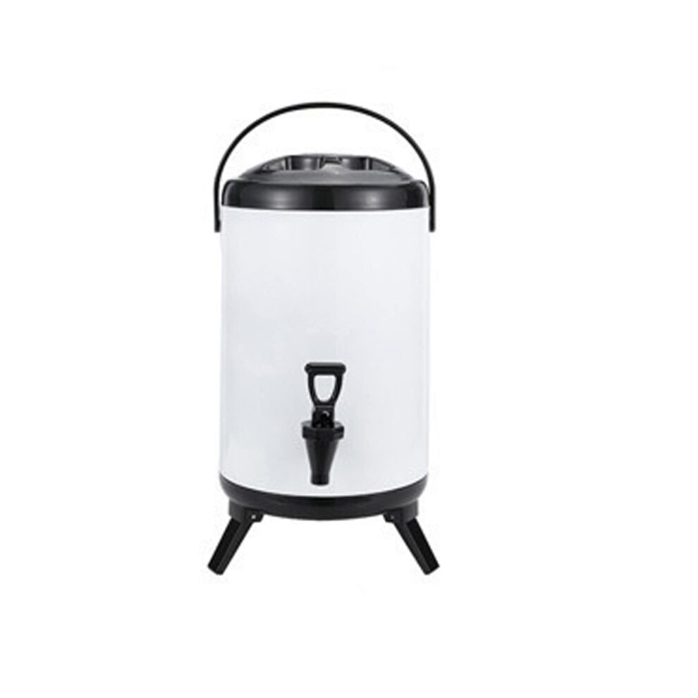 Isolated Hot And Cold Beverage Dispenser Bucket, 8L Stainless Steel Drink Dispenser With Tap, White Color