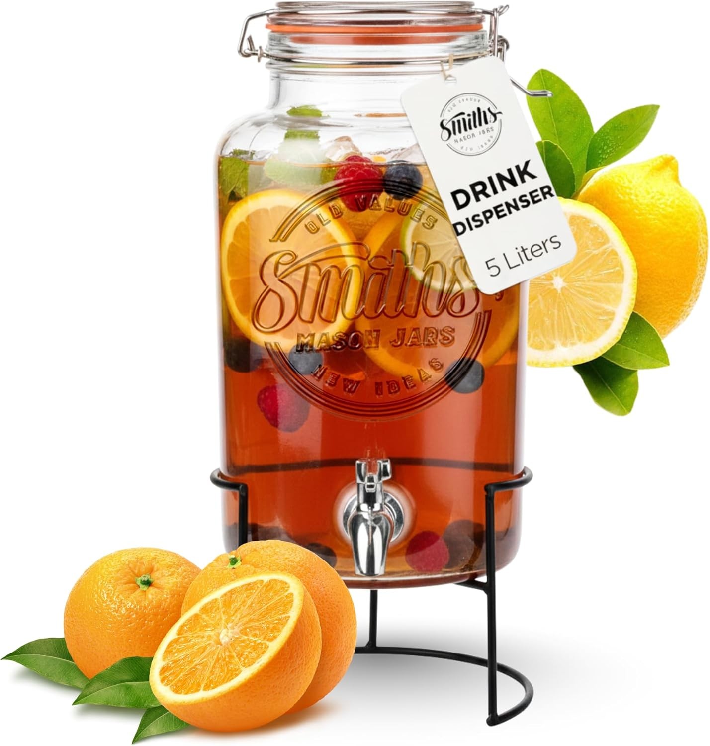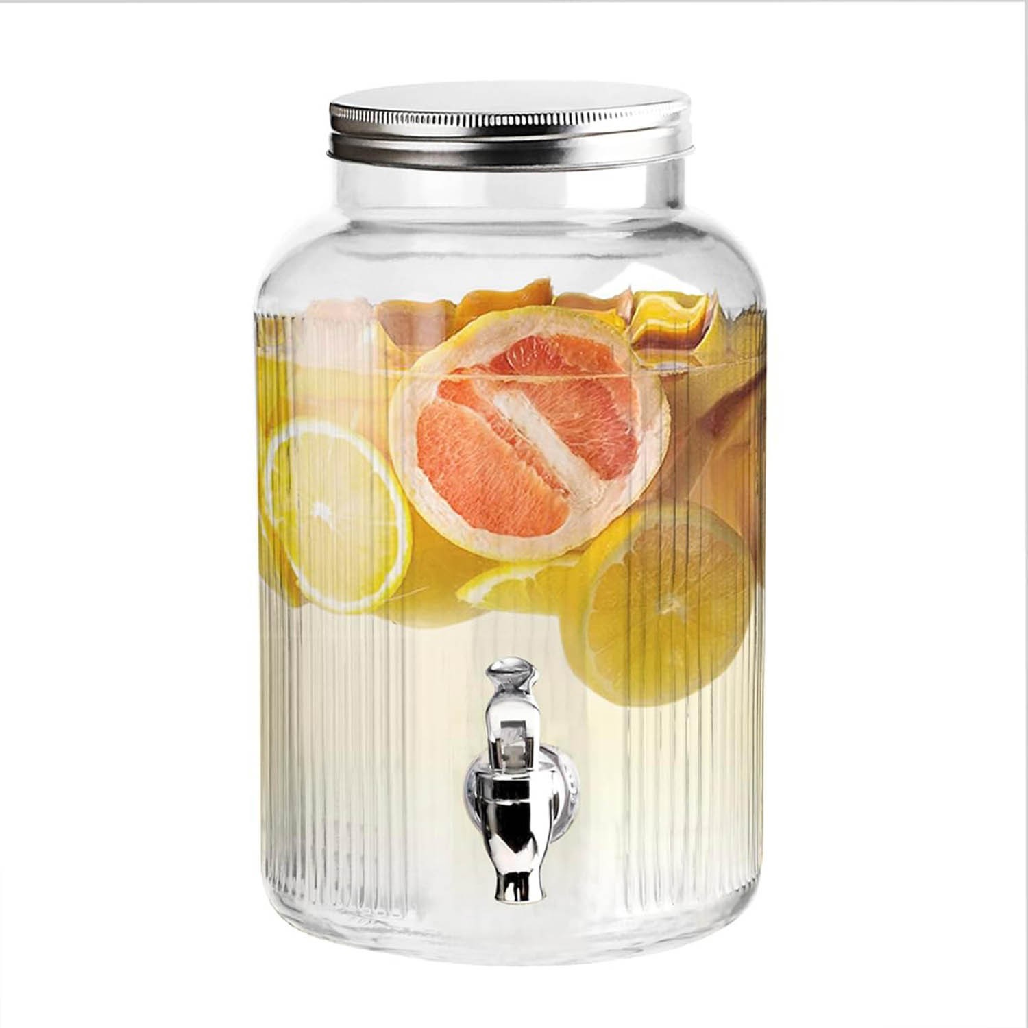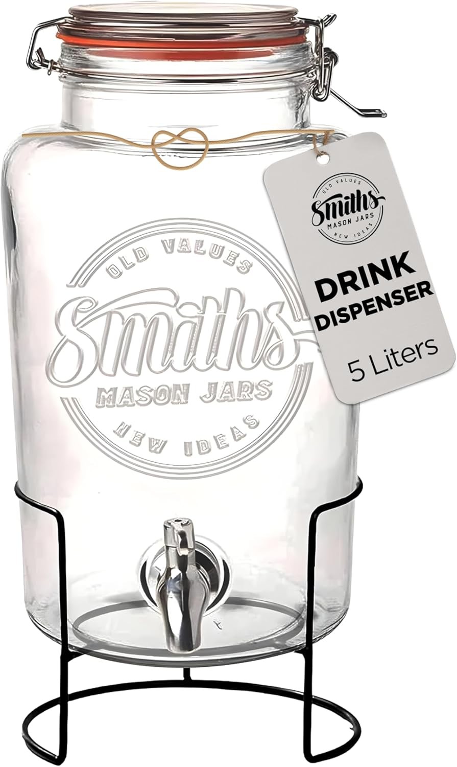 Glass Drink Dispenser with Tap – 5L Mason Jar Beverage Container with Stainle
