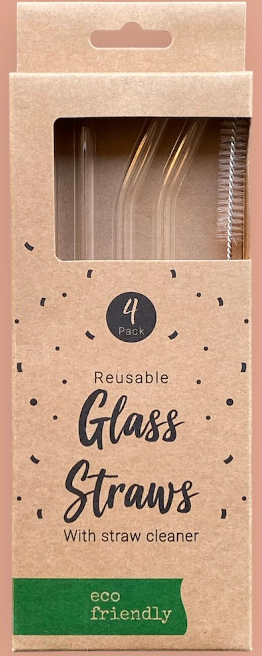 4 x REUSABLE GLASS Drinking Straws with Straw Cleaner UK Stock