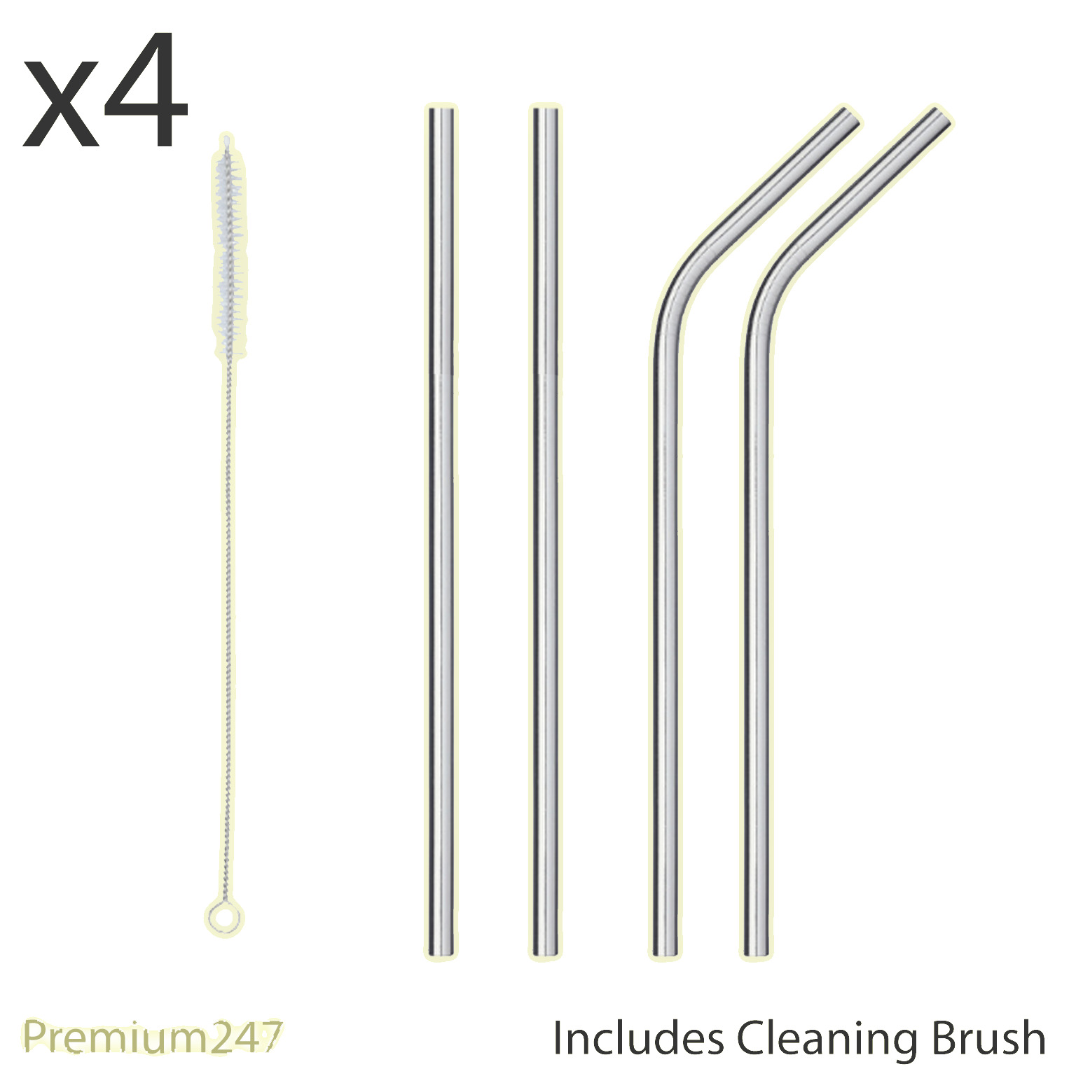 4x Stainless Steel Drinking Metal Straw Reusable Bar Straws Cleaner Brush Kit