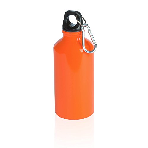 Aluminium Drinking Water Bottle with Screw cap and Carabiner, 400ml (Orange)