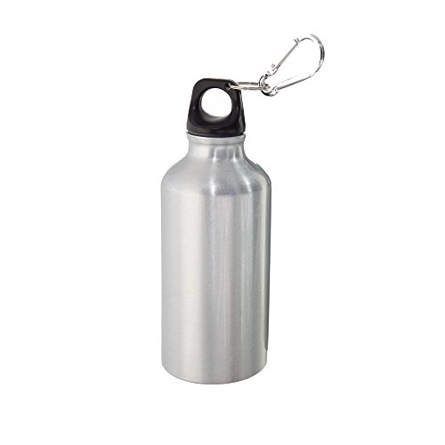 Aluminium Drinking Water Bottle with Screw cap and Carabiner, 400ml (Silver)