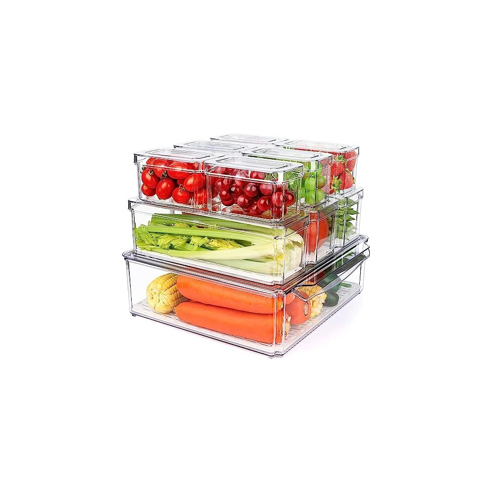 10-Pack Clear Stackable Pantry Bins with Lids â Airtight Food Storage for Kitchen, Cabinets & Fridges (Drinks, Fruits, Veggies, Cereals)