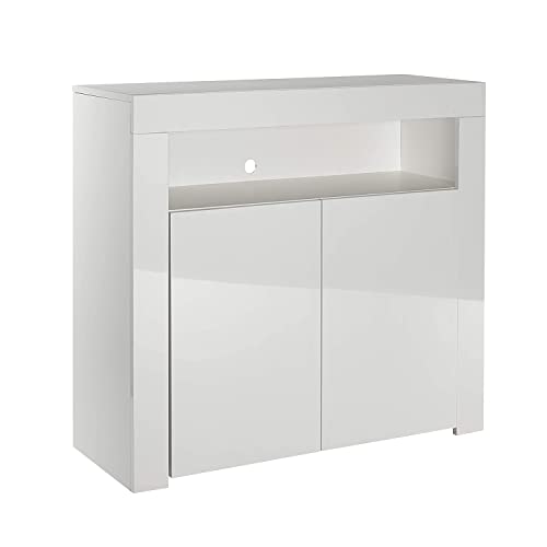 MMT Modern Sideboard White Matt Gloss Buffet Display Cabinets Drinks Cabinet with LED Lights (White, Medium),