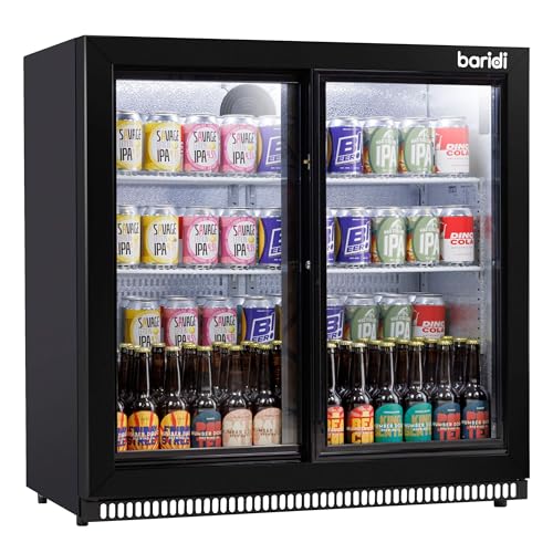 Baridi Back Bar Drinks Fridge/Cooler with Double Sliding Doors, 190L Capacity -