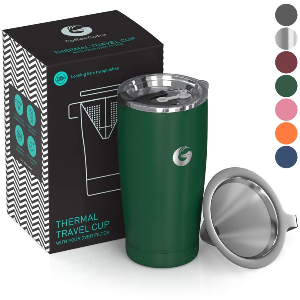 Coffee Gator Insulated Coffee Cup with Paperless Filter, All-in-One Hand Drip Coffee Maker with Filter, Thermal Stainless Steel Travel Cup for Hot Dr